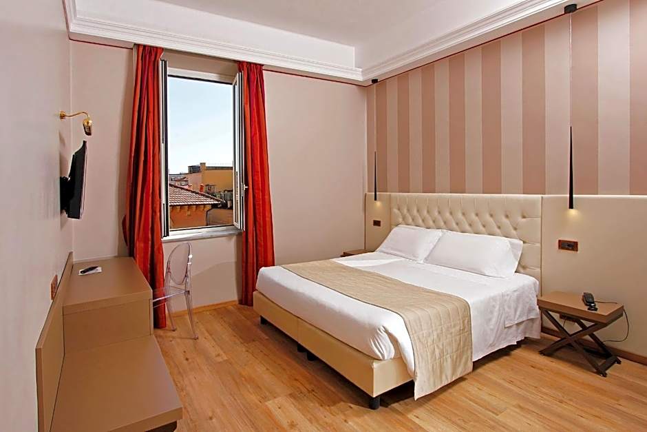 Elegant air-conditioned room with a flat-screen TV and mini-bar.